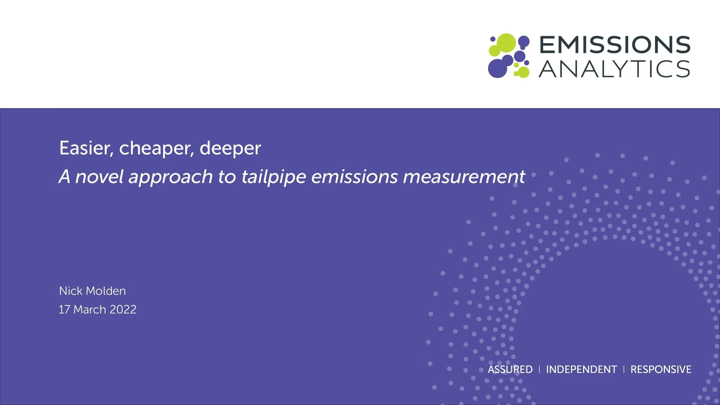 Speaking at 11.45am on 24th April, James Hobday will look at how - using Emissions Analytics’ database of over 2,000 vehicle tests – emissions stakeholders can calculate risk ratings, identify weaknesses and benchmark between vehicles.