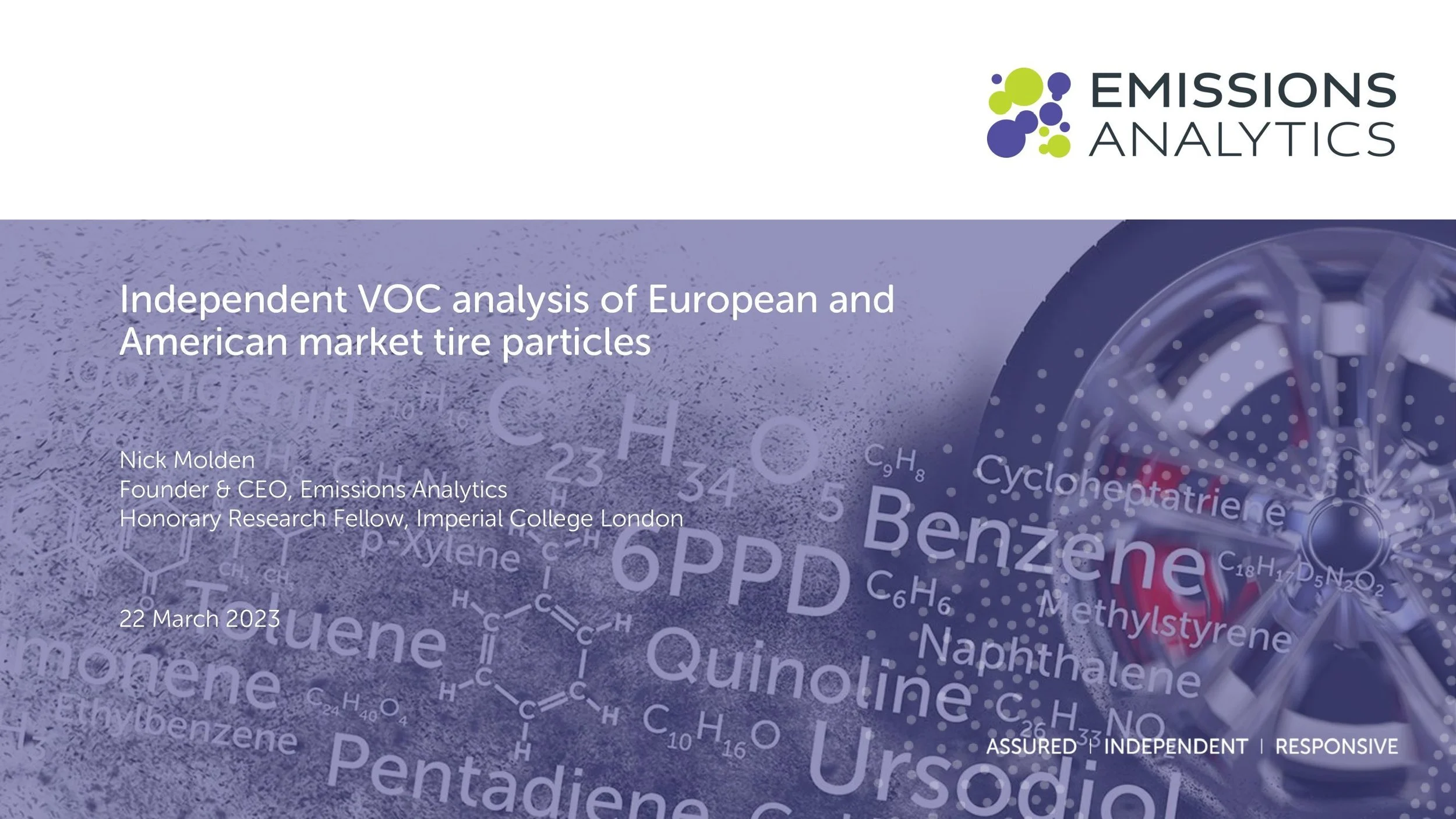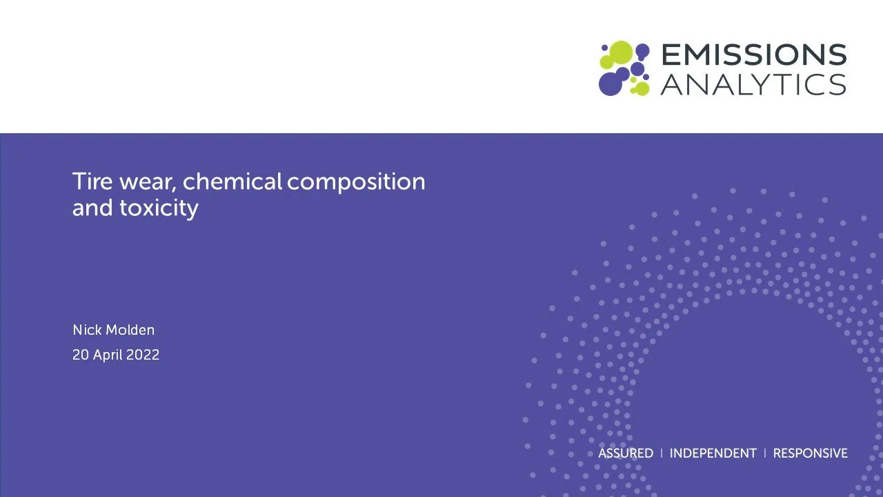 Our CEO & Founder, Nick Molden presented a webinar on Tire wear, chemical composition and toxicity on 20th April 2022.