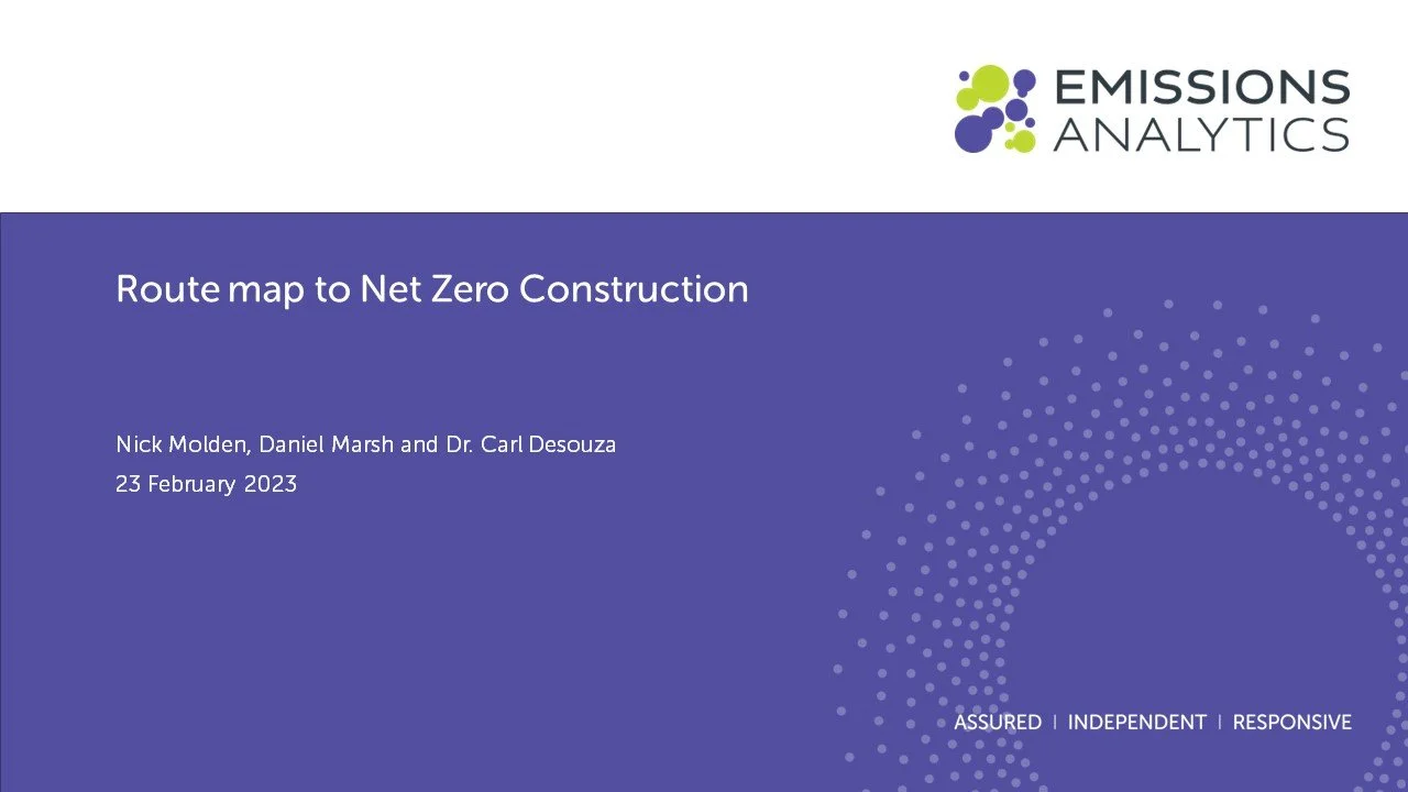 Emissions Analytics is pleased to welcome Daniel Marsh and Carl Desouza from Imperial College London as our guests to discuss the “Route map to Net Zero Construction.”